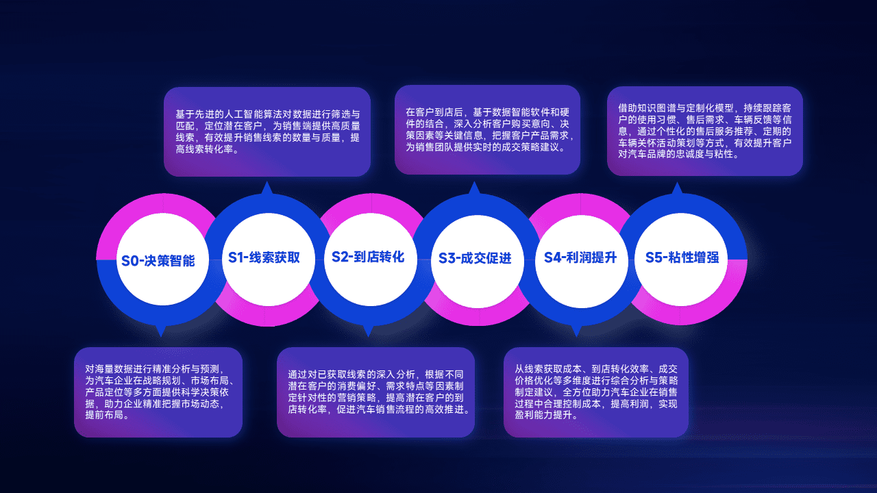 通过拓宽潜在客户来源、、、、优化线索分配并提高到店转化率,,以增强销售效率。。同时,,利用线索数据不断优化分析模型,,,,有效提升转化率,,,扩大营销影响力。。